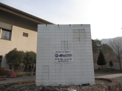 オフミーティングの会場「美輝の里」到着。“I-jayo”のロゴが貼られている。